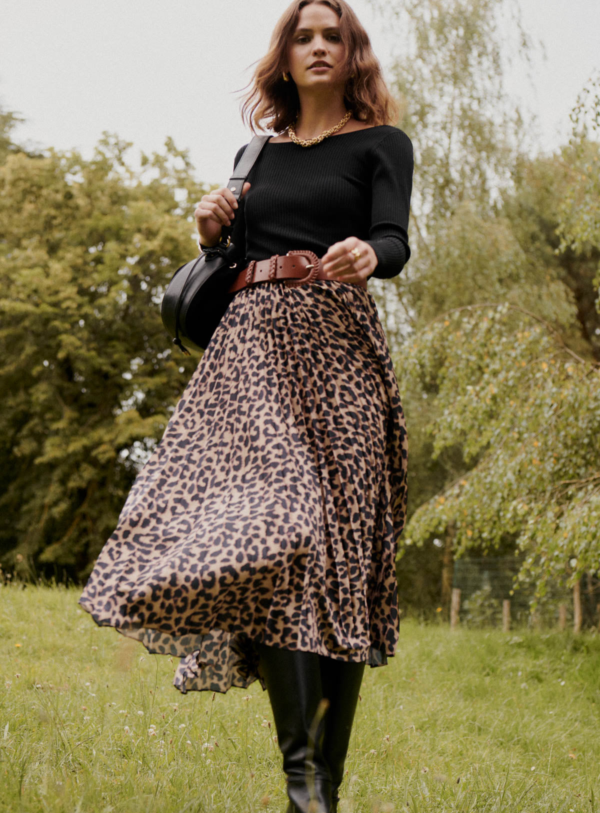 Hvorfor vi kan lide den: Vores uundværlige JUNON-nederdel er blevet genopfundet med et leopardmønster, der passer perfekt til de aktuelle trends. Denne model kombinerer femininitet og komfort, hvilket gør ethvert outfit trendy med det samme. En perfekt kombination for dem, der søger et stykke tøj, der både er trendy og behageligt.