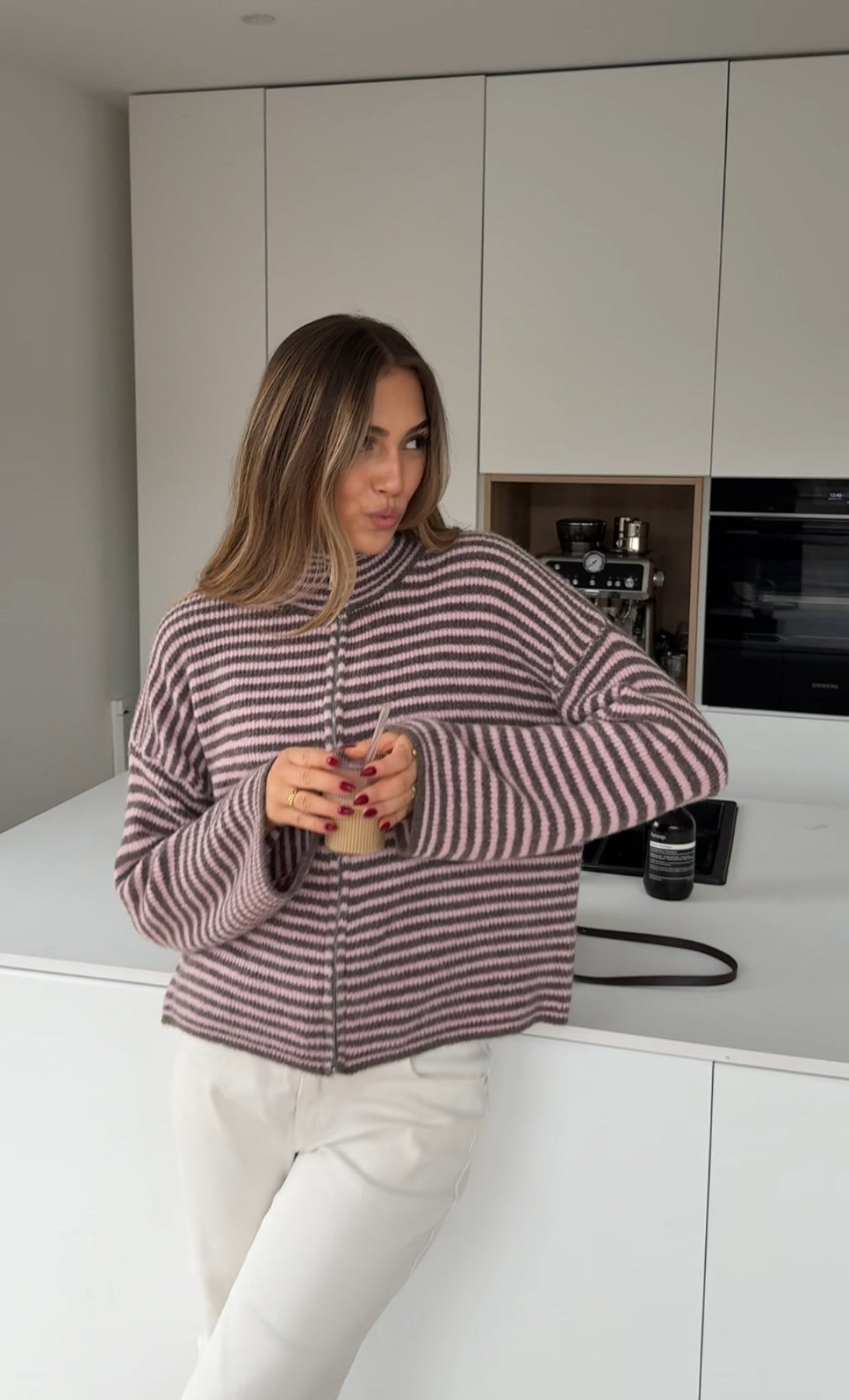 STRIPET ZIP-STRIKKET KARDIGAN BERRY