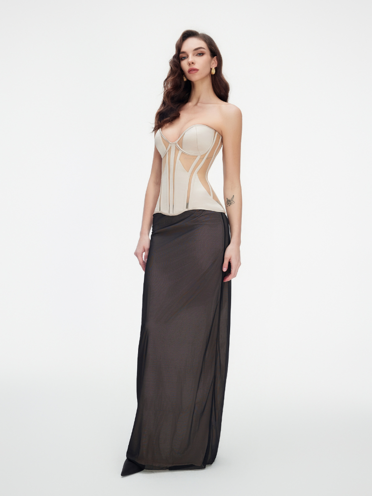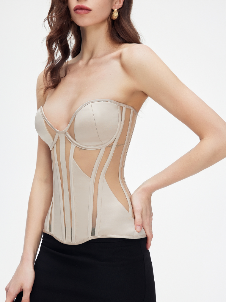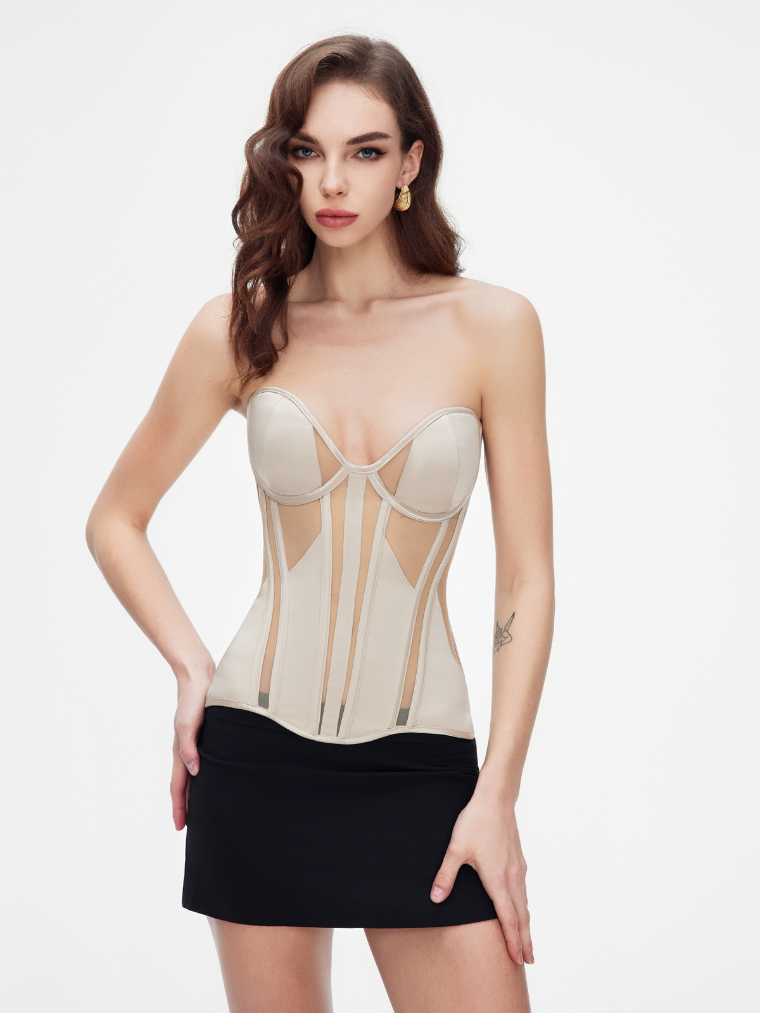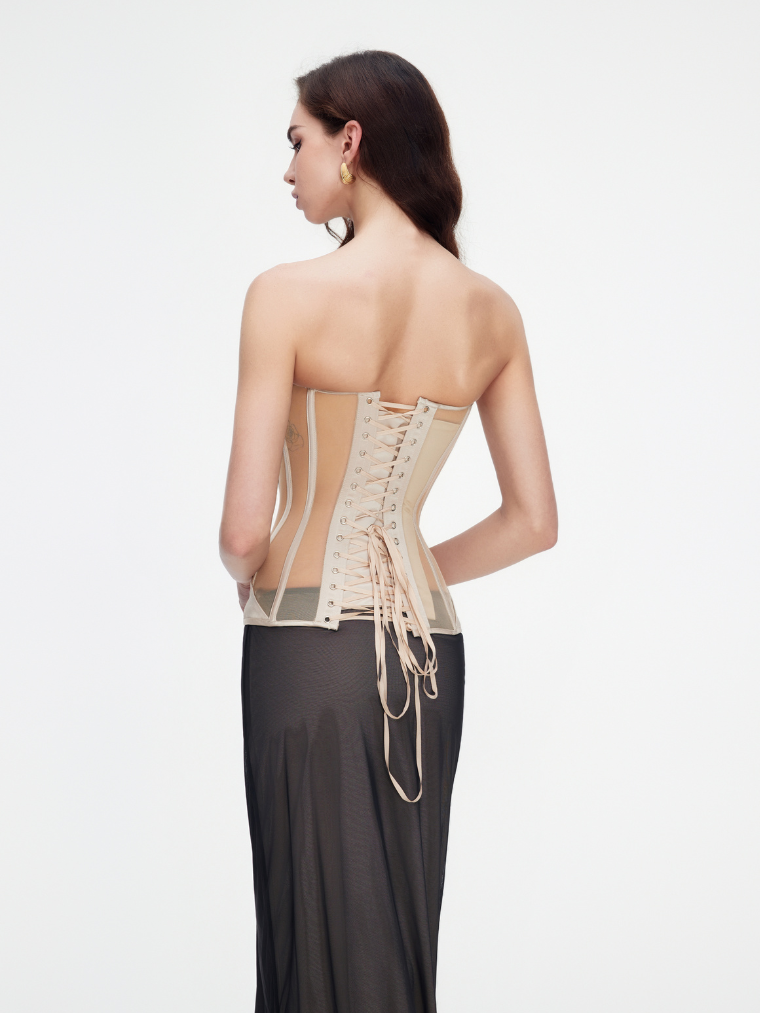 Korsettet med gennemsigtige indlæg afslører sin forførende elegance og lover et imponerende look. Det er fremstillet af kvalitetsmesh, der kombinerer holdbarhed og komfort, mens den tykke bh med bøjler og den lange form sikrer perfekt støtte og pasform. Snøringen bagpå tilføjer ikke kun et stilfuldt accent, men giver dig også mulighed for at tilpasse taljen efter din smag. Uanset hvilken farve du vælger – sort eller beige – vil dette korset blive en integreret del af din garderobe og understrege din femininitet og tiltrækningskraft ved hvert skridt.